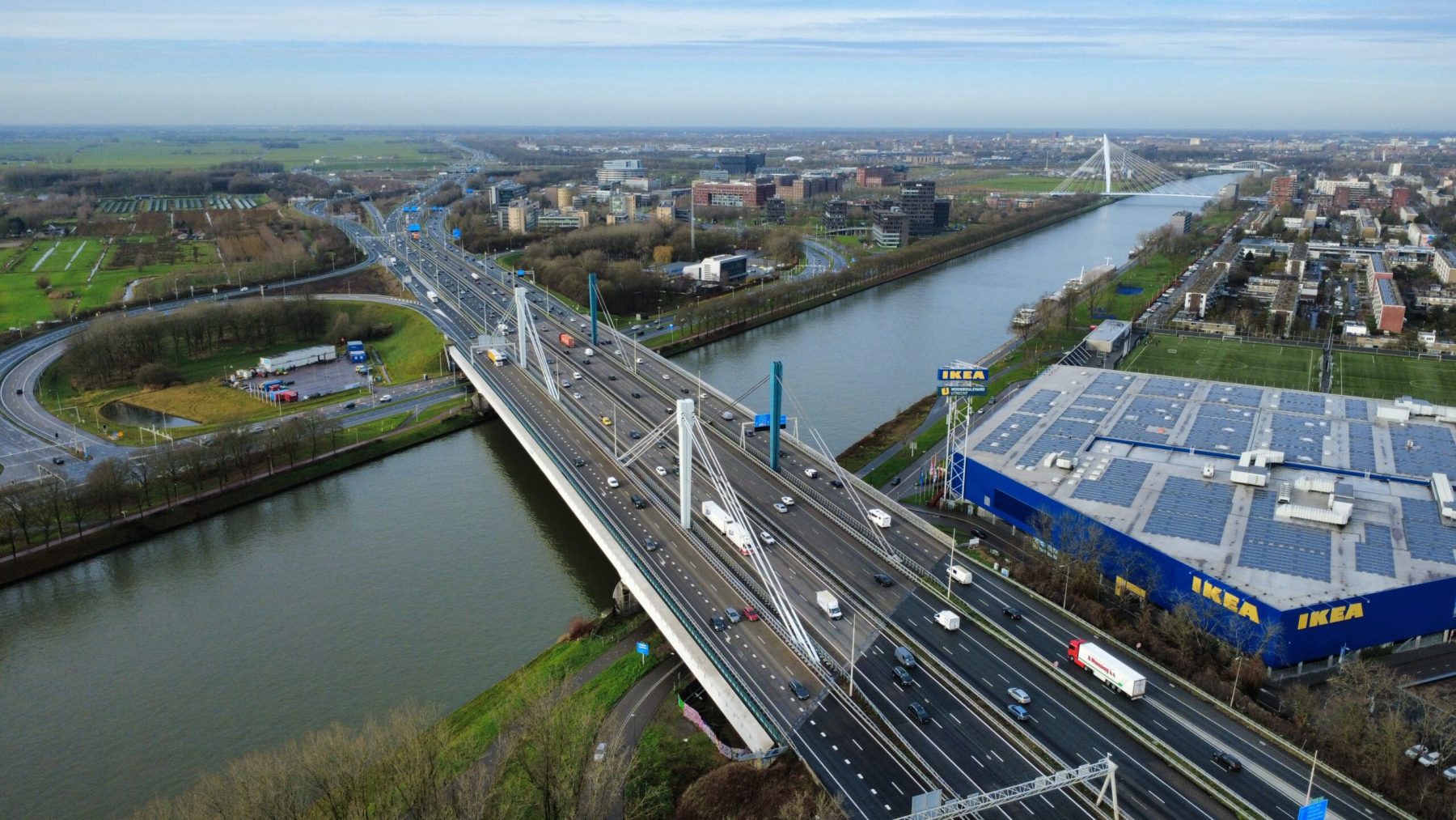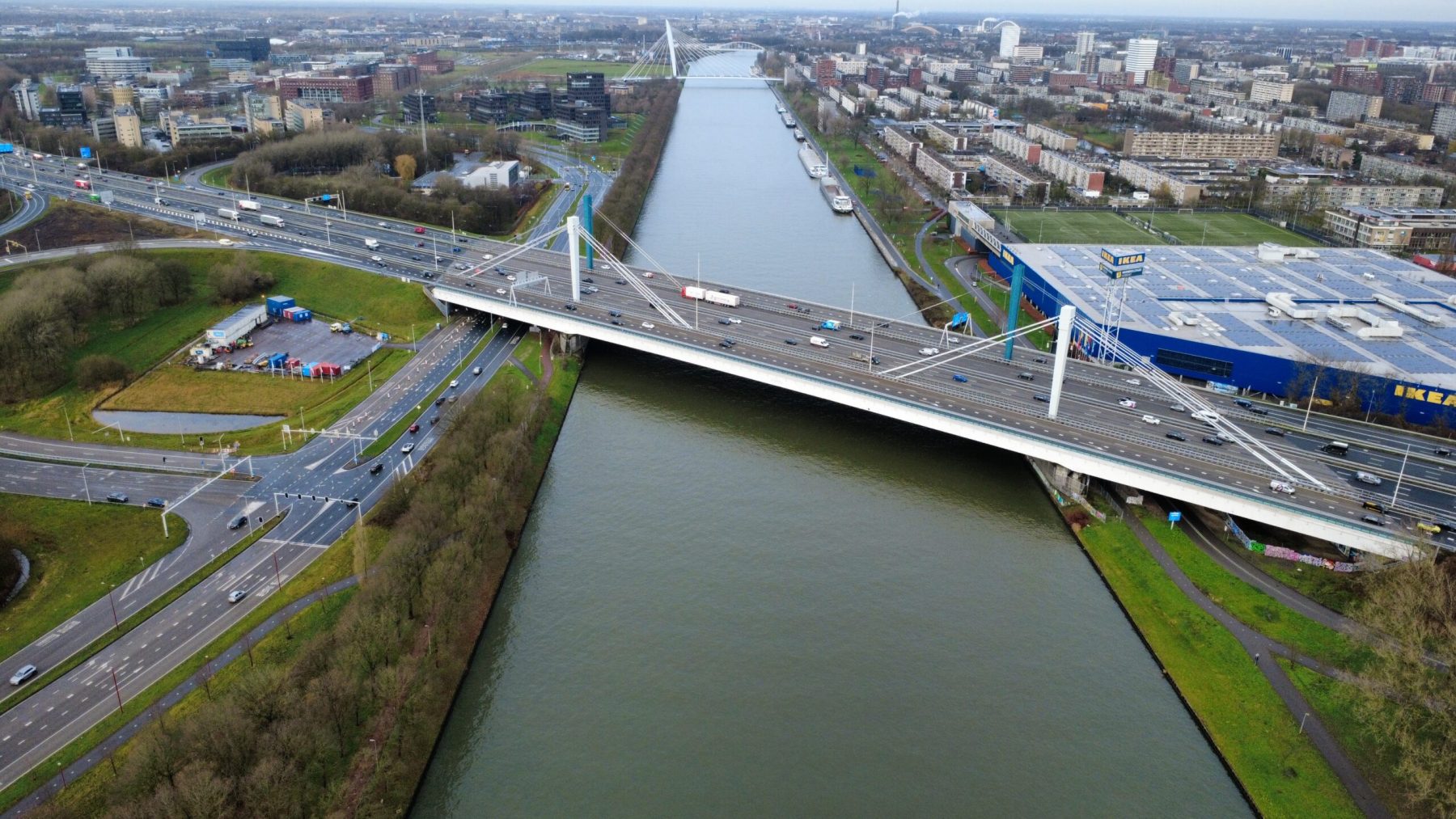 De beelden laten zien hoe verkeersstromen, waterwegen en landschap samenkomen op één knooppunt. Door het luchtperspectief ontstaat een helder overzicht van complexiteit en ruimtelijke samenhang—essentieel voor het communiceren van infrastructuurprojecten. Compositie, licht en beweging zijn bewust ingezet om zowel technische leesbaarheid als visuele kracht te waarborgen.